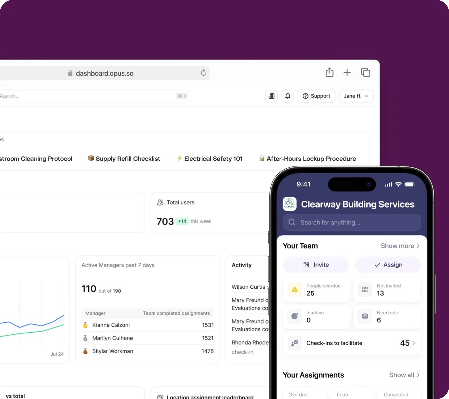 Opus helps facilities, warehousing, logistics, and manufacturing teams train faster, cut turnover, and stay compliant — all on mobile.