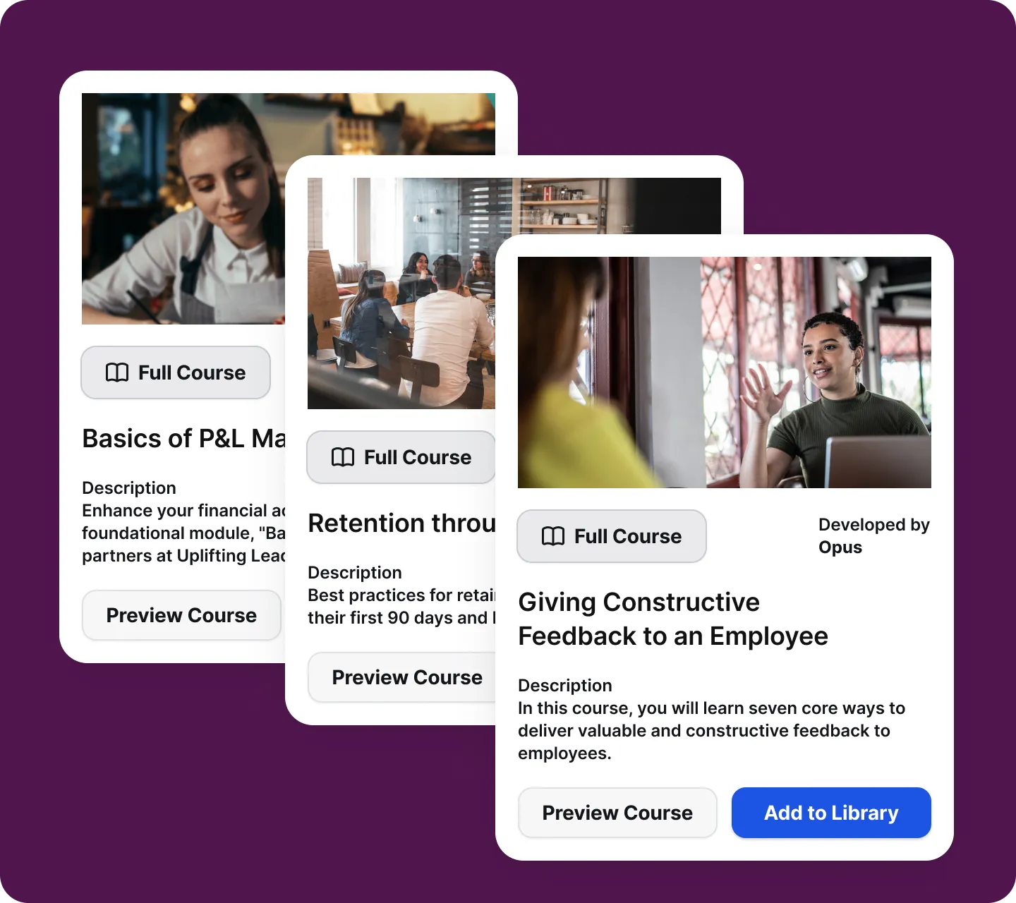 Strong managers stay longer and perform better. Opus helps you deliver training that improves retention, boosts performance, and builds confident leaders.