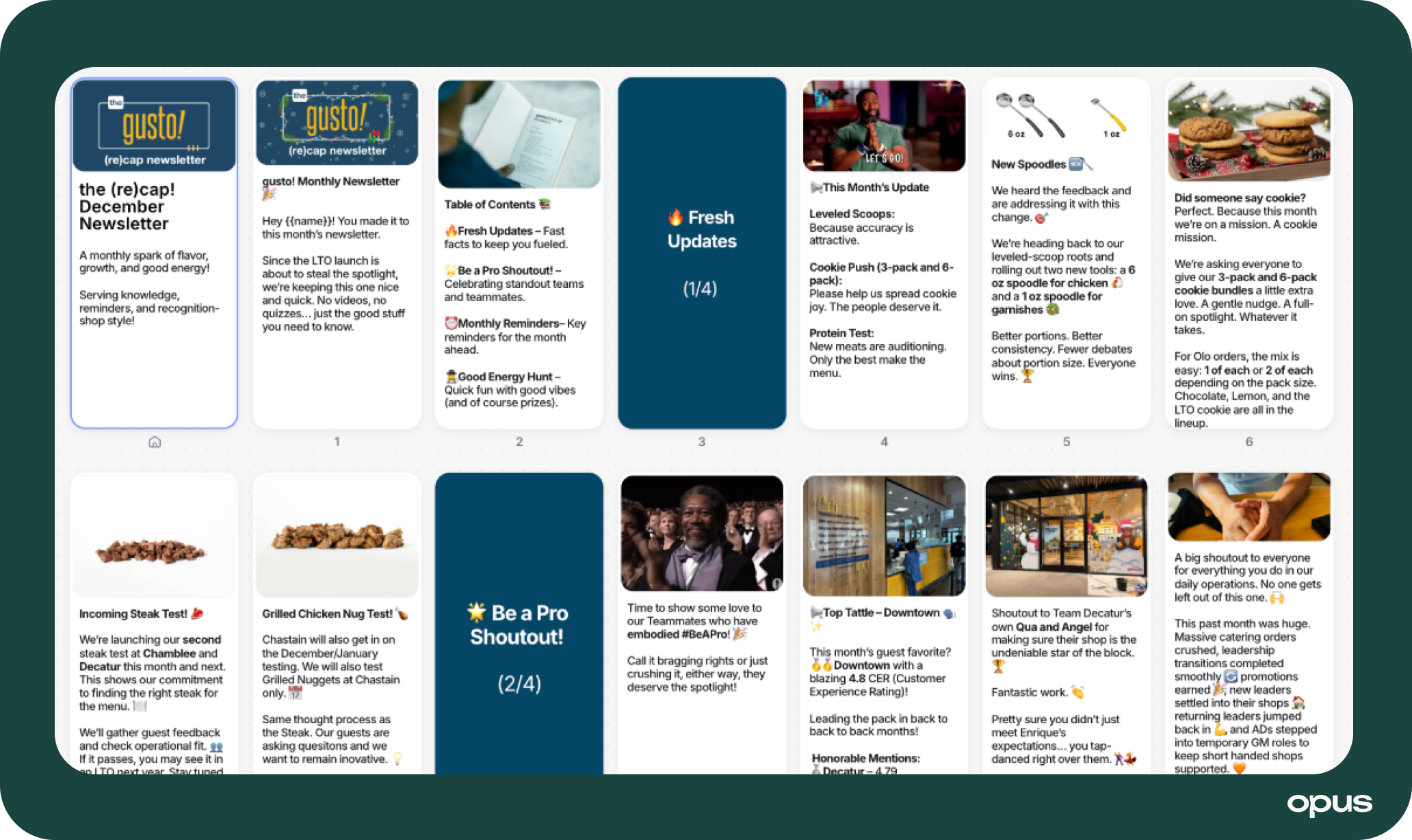 Same Opus training platform, different strategies—here's how gusto! and Sounds Fun Entertainment structure their newsletters to fit their operational needs.