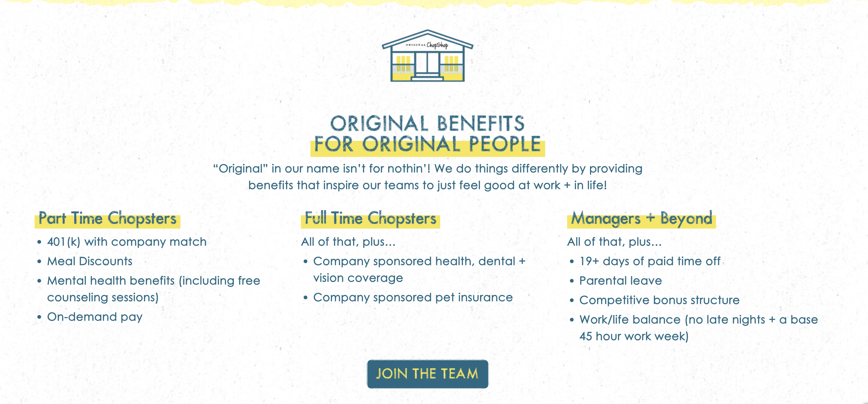 Original ChopShop doesn't just offer standard benefits—they've built a package that addresses the real financial stressors their team members face.