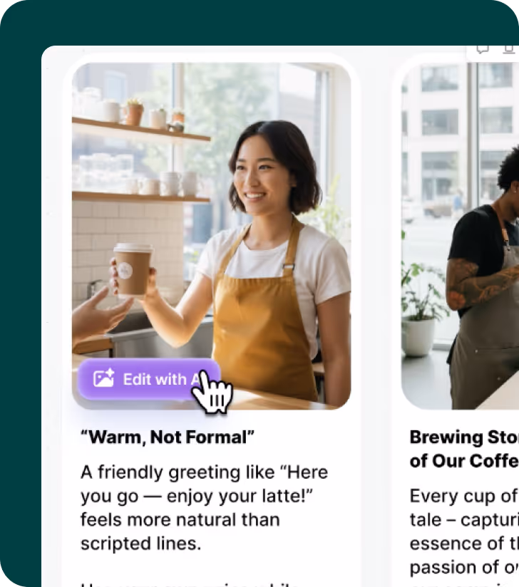 Add your own photos or videos—or select from our set. Then use the AI-image editor to make it yours, for free!