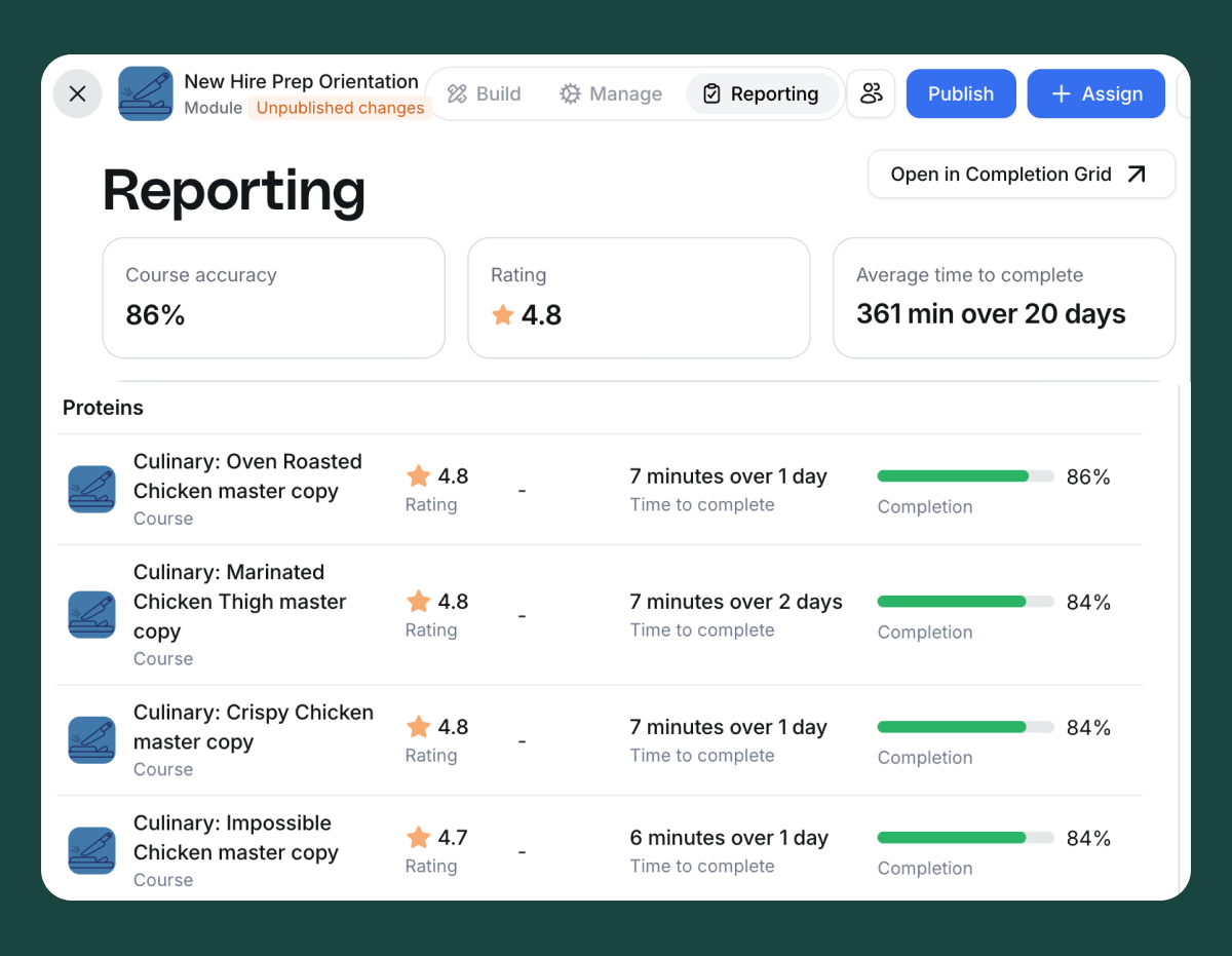 Restaurant Team Leads (RTLs) visit every store twice a week to observe the full prep procedure live—from greens through proteins. When something is off, the response is course reassignment, not reprimand. Leaders reissue the relevant course and follow up with hands-on coaching.