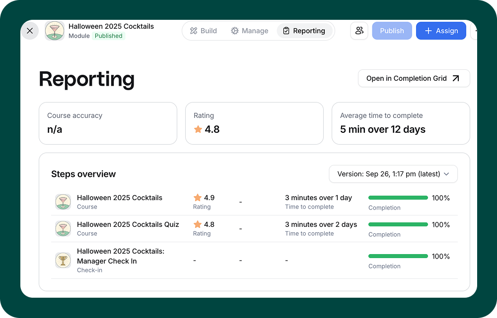 The Result: Team members who can confidently sell new seasonal drinks and handle real guest interactions, not just click through new menu item quizzes.